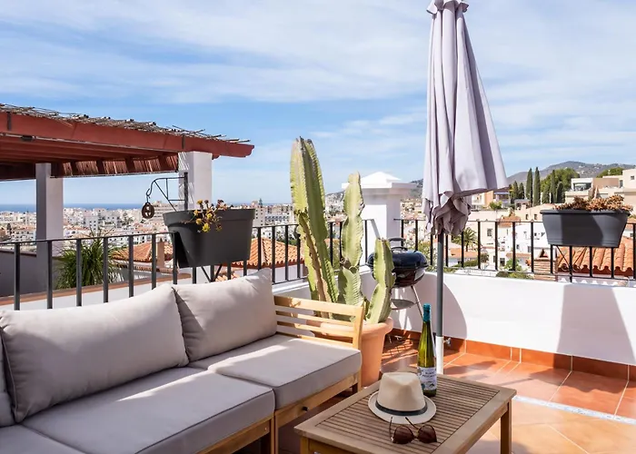 Villa Aljamar Burriana Beach Nerja med 2 sovrum, som ligger cirka 10 minuters bilfärd från Cueva de Nerja, erbjuder snöskidåkning och skidåkning för aktiva gäster. Villan med 2 badrum har en parkering och en terrass med utsikt över havet.
